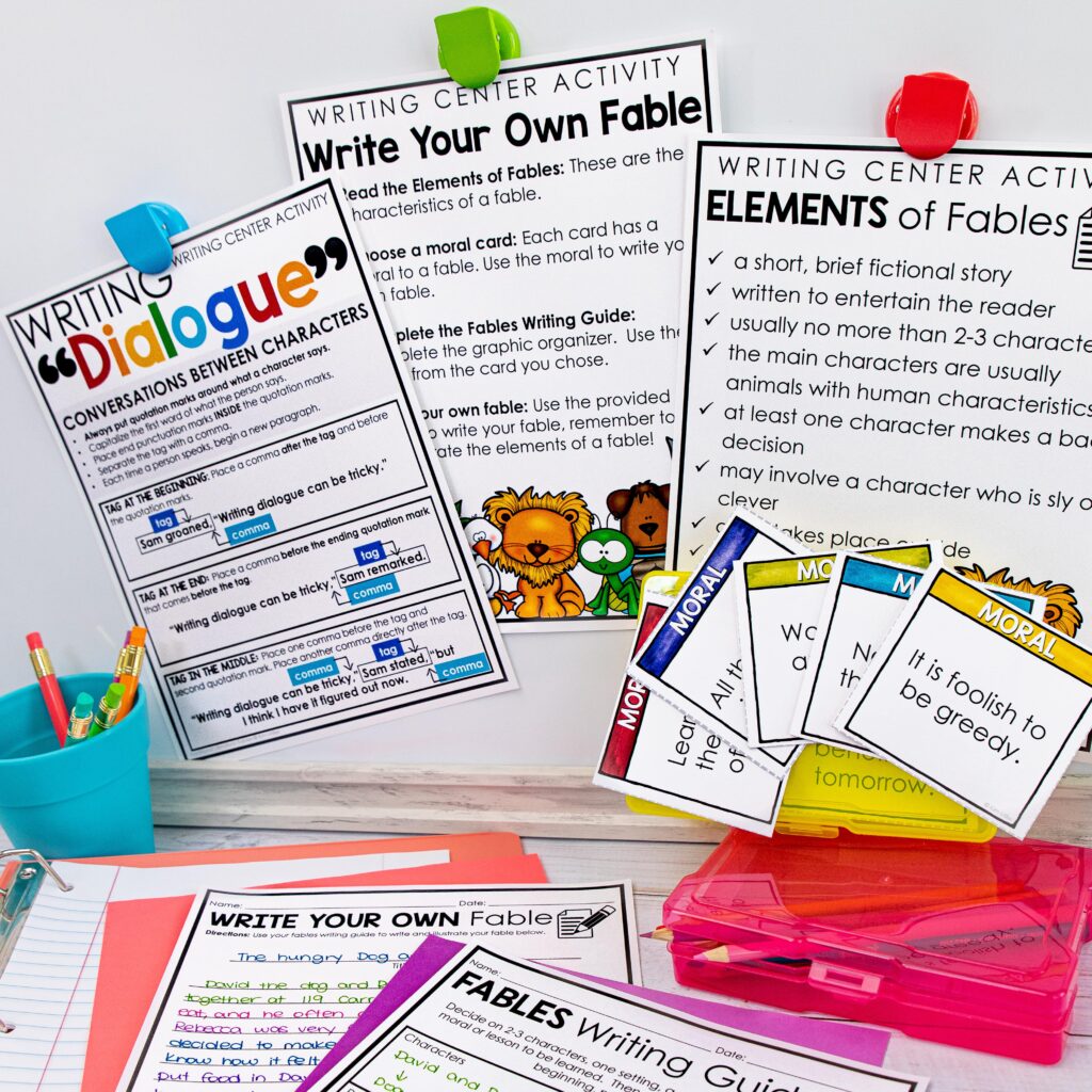 Our focus on this last day is writing, and this writing activity is one of my favorites. With a little guidance, students will write their own fable! This is a class favorite activity year after year.
