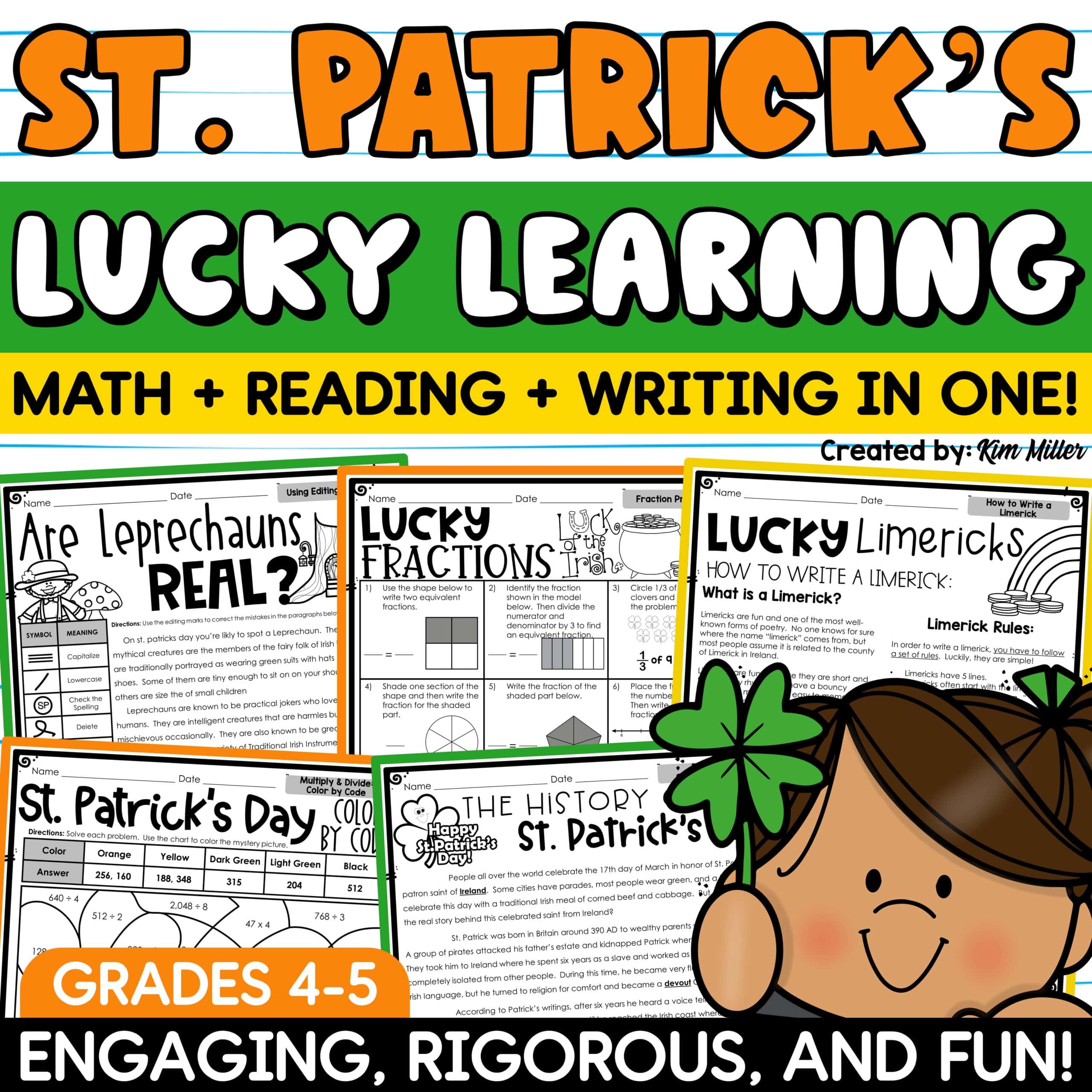 By purchasing this bundle, you will save 30% off the price. Includes 12 no-prep reading and math packets for grades 4–5 — perfect for every holiday from Back to School to End of Year!